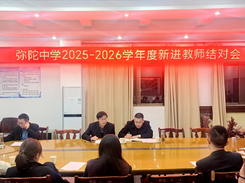 为充分发挥骨干教师传、帮、带作用,有效促进青年教师教学水平提升,10月21日晚,弥陀中学2025-2026学年度新进教师结对会在知新楼三楼会议室召开。会议由教研室负责人主持,学校党支书记、校长赵福根,副校长蔡甘泉,各学科教研组长,各指导老师及新进教师参加会议。