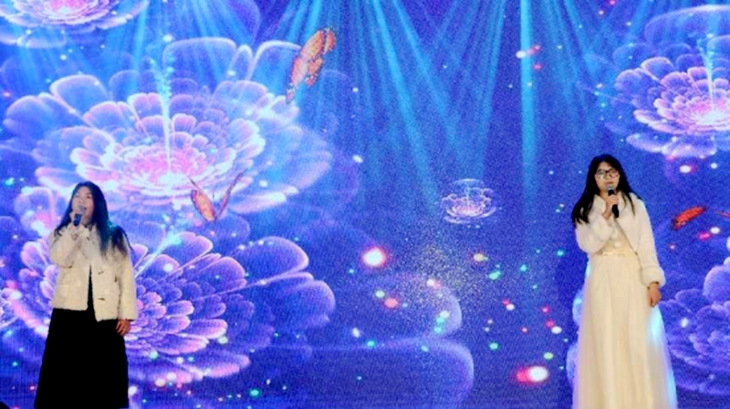 太湖县黄梅戏剧团李娜老师带来的《杉木水桶》《一月思念》选段,婉转唱腔尽显梨园雅韵,让师生领略了传统戏曲的独特魅力;刘娜玲老师压轴演唱的《梅花赋》,以傲骨风骨的旋律为晚会画上圆满句点。