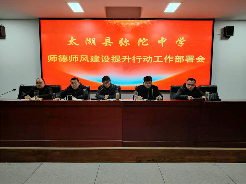 2月5日,弥陀中学在多媒体教室召开师德师风建设提升行动工作部署会暨期末工作会。会议由校党支部书记、校长赵福根主持,党支部专职副书记周盛开,副校长蔡甘泉、李加林,党支部委员徐会江及全体教职工参加会议。