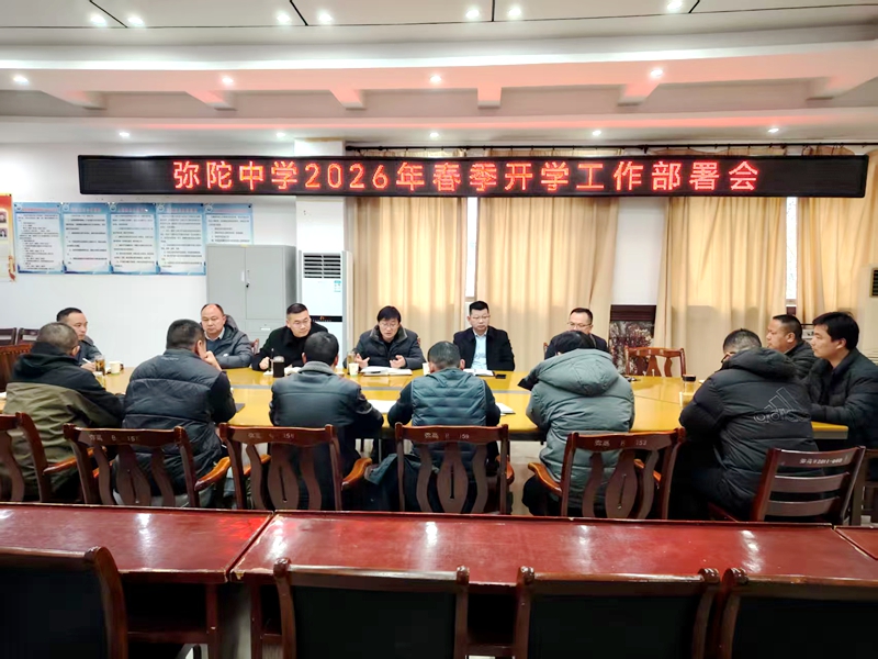 2月24日,弥陀中学2026年春季开学工作部署会在学校知新楼三楼会议室召开,学校党支部书记、校长赵福根主持会议,全体行政人员参加会议。
