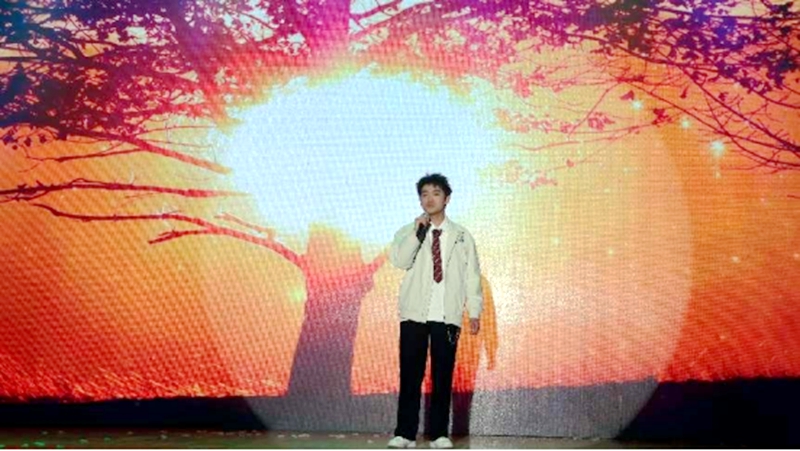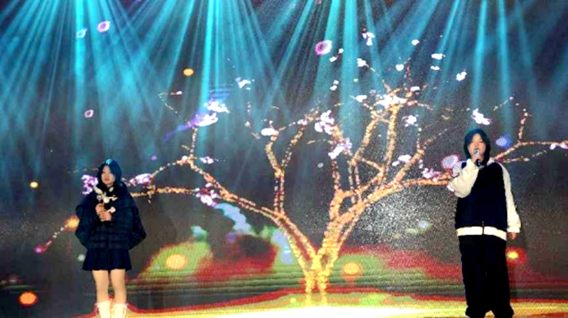 太湖县黄梅戏剧团李娜老师带来的《杉木水桶》《一月思念》选段,婉转唱腔尽显梨园雅韵,让师生领略了传统戏曲的独特魅力;刘娜玲老师压轴演唱的《梅花赋》,以傲骨风骨的旋律为晚会画上圆满句点。
