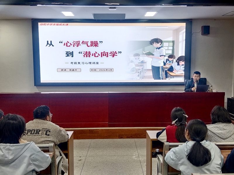 4月23日,弥陀中学党支部专职副书记周盛开讲授精神成长课,助力高三学子调适心态、冲刺高考。