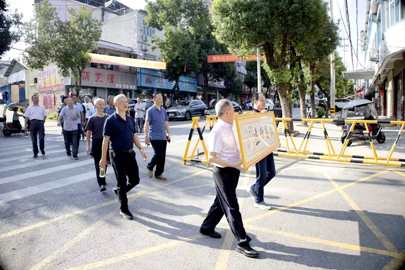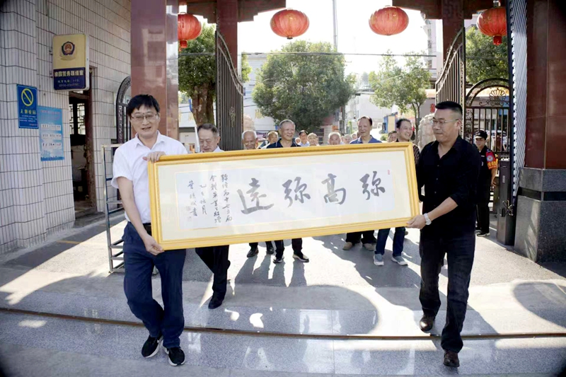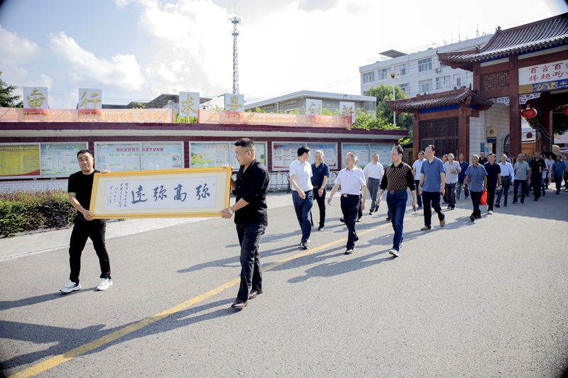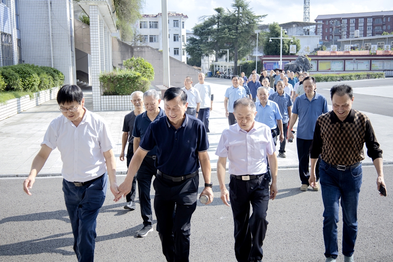 2时30分,校友们列队步行至母校,两名校友代表走在队伍前列,神采奕奕捧呈书法匾额“弥高弥远”,赵福根、蔡甘泉等热情迎接。漫步校园,校友们目睹全新母校,不时驻足感慨,回忆起五十年前挑灯夜读、露天观影的青春岁月,纷纷拿出手机记录校园新颜。