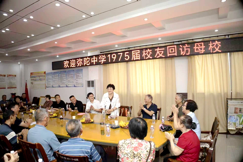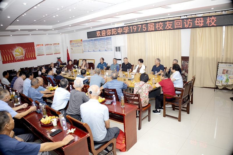 金秋十月,丹桂飘香。4日下午,弥陀中学 1975 届校友回访母校,学校党支部书记、校长赵福根,副校长蔡甘泉、办公室负责人参加相关活动。